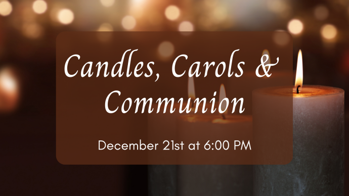 You are invited to a special service celebrating the birth of Jesus with cherished carols, Advent readings, communion, and candle lighting. Service begins at 6 PM.